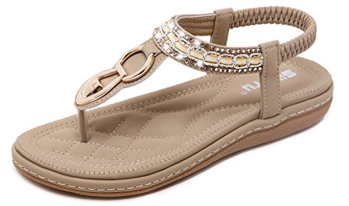 Yooeen Sandali da Donna Eleganti Strass Boemia con Perline Clip Toe Sandali Estate Elastico T-Strap Infradito Sandali da Spiaggia Grandi Dimensioni 35-45