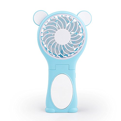 YOOFAN Mini Orso Specchio e Ventilatore Portatile Ventilatore da Tavolo Pieghevole con Batteria 18650 per Casa e Viaggio, Blu
