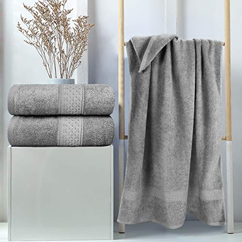 Yoofoss Asciugamano da Bagno 100% cotone 2 pezzi Telo da doccia 70x140 cm Assorbente Biancheria da bagno Bath Towel Asciugamano ospite Asciugamani per la Sauna per la casa e l'hotel grigio