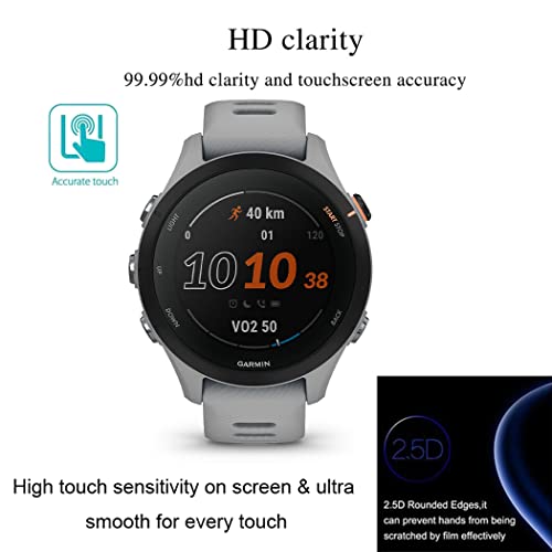 Rivestimento oleorepellente: questa pellicola protettiva in vetro temperato Forerunner 255S ha un rivestimento trasparente idrorepellente e oleorepellente che può facilmente separare olio, acqua, impronte digitali e altre macchie, rendendo lo schermo facile da pulire.