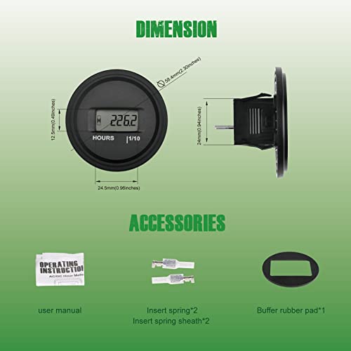 Yooreal AC/DC contaore del generatore, contatore delle ore di manutenzione rotondo, impermeabile, funziona su vari ZTR/falciatrice da giardino, trattore, generatore, decespugliatore UTV.