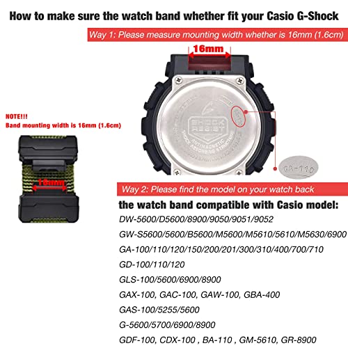 ⌚ Personalizza il tuo Casio G-SHOCK, SOLO cinturino, Orologio Casio NON incluso. La sezione "Descrizione del prodotto" in questa pagina elenca il modello adatto, DW5600 / DW-6900GW-M5610 / GW-5000 5035, GA-100 / GA-120 / GA-110 / GA-400, G-8900 ecc.
