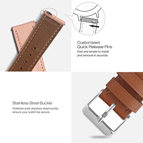 YOOSIDE Cinturino per Samsung Galaxy Watch 42mm/Galaxy Watch Active 2, Cinturino da polso classico in vera pelle a sgancio rapido con fibbia in acciaio inossidabile per Garmin Vivoactive 3 (Marrone)