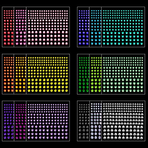 CONFEZIONE - Riceverai 18 fogli con un totale di 3.096 brillantini adesivi per viso. Le dimensioni sono disponibili in 3 mm, 4 mm e 5 mm.