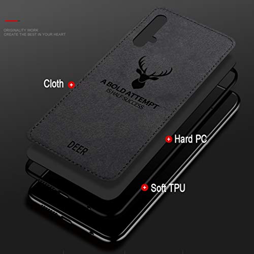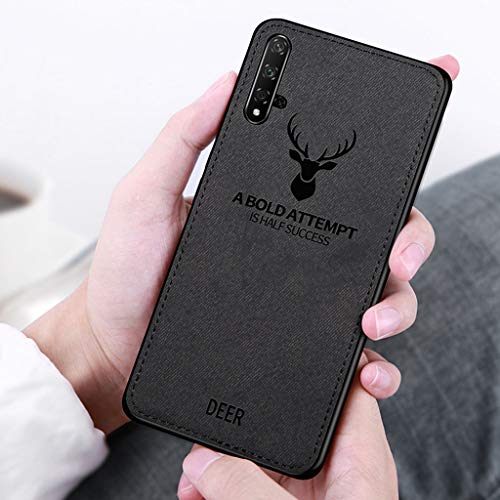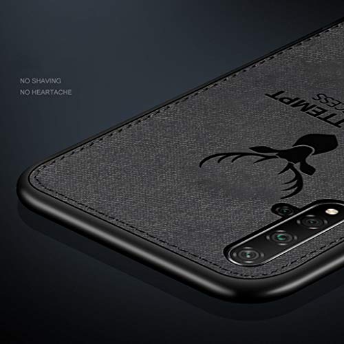 Yoota Cover Huawei Nova 5T, Cover Honor 20 Cover Stoffa Testa Cervo + Custodia Bordo Morbida TPU Paraurti Antiurto Anti-Scivolo Caso per Huawei Nova 5T - Nero