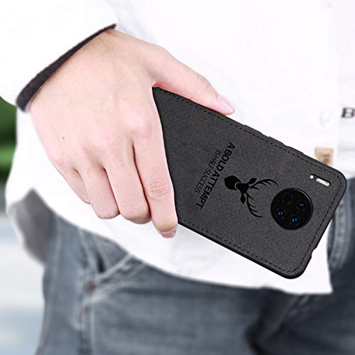 Yoota Cover Huawei Mate 30 PRO, Cover Stoffa Testa Cervo + Custodia Bordo Morbida TPU Paraurti Antiurto Anti-Scivolo Caso per Huawei Mate 30 PRO - Nero