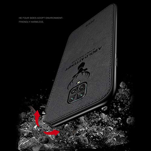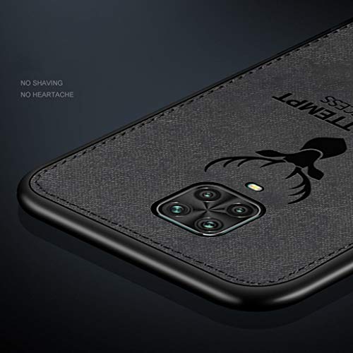 Yoota Cover Redmi Note 9S, Cover Redmi Note 9 PRO, Cover Redmi Note 9 PRO Max, Stoffa Testa Cervo + Custodia Bordo Morbida TPU Paraurti Antiurto Anti-Scivolo Caso per Xiaomi Redmi Note 9S - Nero