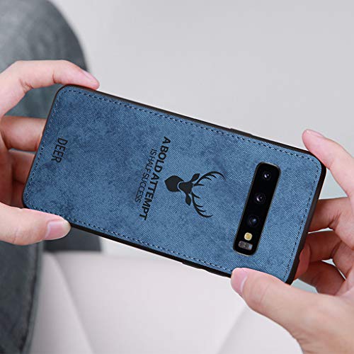 Yoota Cover Samsung Galaxy S10+, Cover Stoffa Testa Cervo + Custodia Bordo Morbida TPU Paraurti Antiurto Anti-Scivolo Caso per Samsung Galaxy S10+ / S10 Plus - Blu