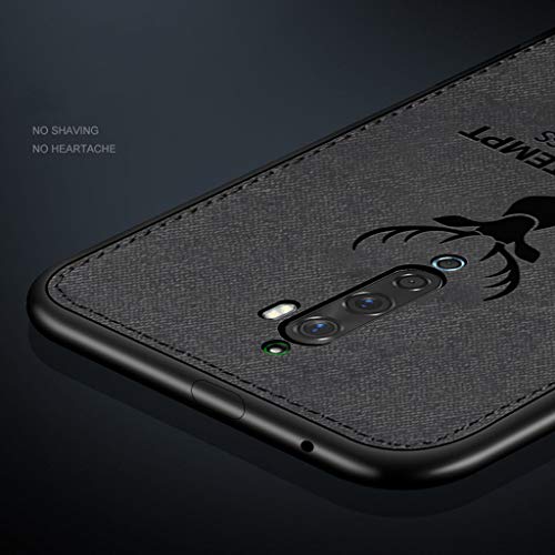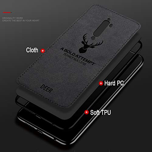 Yoota Cover Oppo Reno 2 Z, Cover Stoffa Testa Cervo + Custodia Bordo Morbida TPU Paraurti Antiurto Anti-Scivolo Caso per Oppo Reno 2 Z - Nero