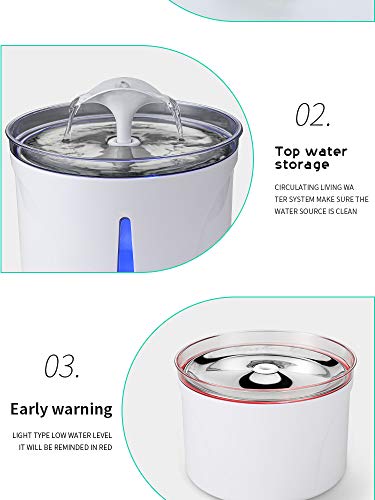 Indicatore luminoso a LED: aggiungere l'acqua mentre la spia è rossa, la fontana per animali domestici sarà blu quando è piena d'acqua. Sarà spento se non c'è acqua, molto sicuro per i tuoi animali domestici.