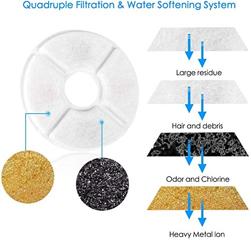 Fontana per animali domestici da 2,5 litri: fontana da 2,5 litri, enorme capacità di riempire l'acqua frequentemente. L'erogatore dell'acqua circolante può fornire acqua più pulita e ridurre il rischio di malattie.