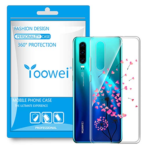 Yoowei [2-Pack] Cover per Huawei P30 Trasparente con Disegni, Morbida Silicone Ultra Sottile TPU Gel Custodia Protettiva per Huawei P30, Amore Cuore + Fiore Bianco