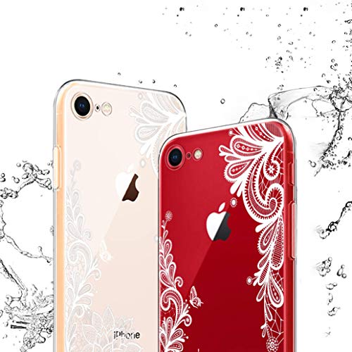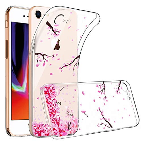 Yoowei [3-Pack] Cover Compatibile con iPhone SE 2020 e iPhone 8 e iPhone 7 Trasparente Morbida TPU Silicone Ultra Sottile Protezione a 360 Gradi Custodia, Fiori Bianco Fiore di Ciliegio Tarassaco