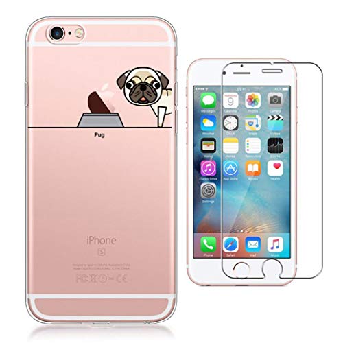 Yoowei Compatibile con Cover iPhone 6 / Cover iPhone 6s [Pellicola Protettiva in Vetro Temperato], Trasparente Ultra Sottile Morbido TPU Gel Case Custodia per iPhone 6/6s (Cane e Animali Domestici)