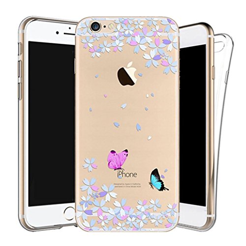 Yoowei Cover iPhone 6 Plus / 6s Plus [Pellicola Protettiva in Vetro Temperato], Design Colorato Cristallo Trasparente Ultra Sottile Morbido TPU Gel Custodia (Sakura Farfalla)