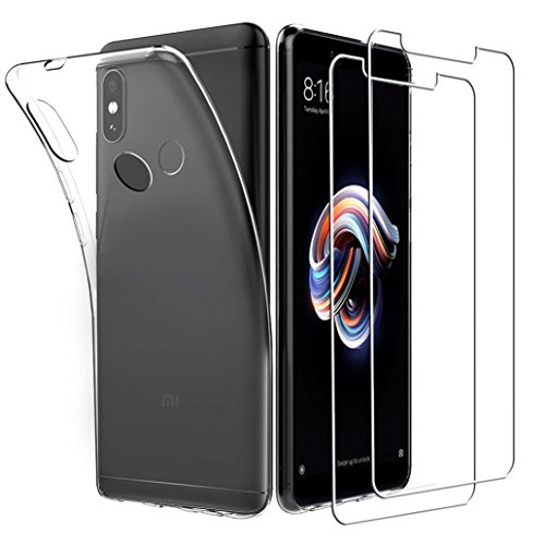 Yoowei Cover per Xiaomi Redmi Note 5 Trasparente + [2-Pack Pellicola Protettiva in Vetro Temperato], Molle di TPU Silicone Ultra Sottile AntiGraffio Antiurto Custodia per Xiaomi Redmi Note 5