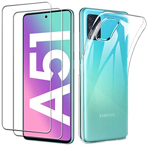Yoowei per Samsung Galaxy A51 Cover Trasparente con [2 Pezzi Pellicola Protettiva in Vetro Temperato], TPU Morbido Silicone Sottile AntiGraffio Antiurto Custodia per Samsung Galaxy A51