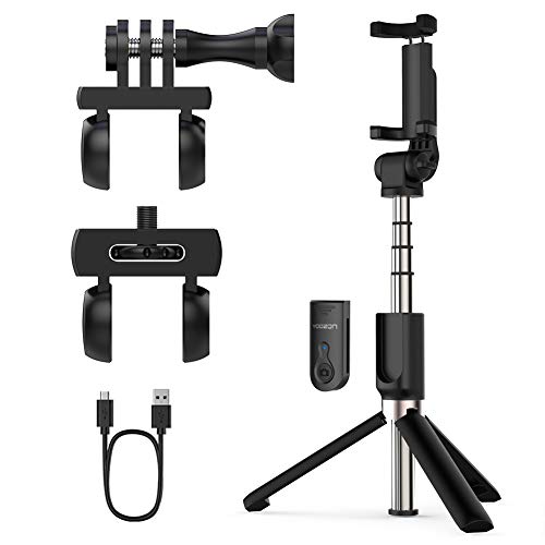 Yoozon aggiornato selfie stick Bluetooth, allungabile selfie stick con telecomando wireless e treppiede selfie stick per GoPro, Action Camera, iPhone XS max/XR/XS/x/Galaxy S9 Plus/Google & More (nero)