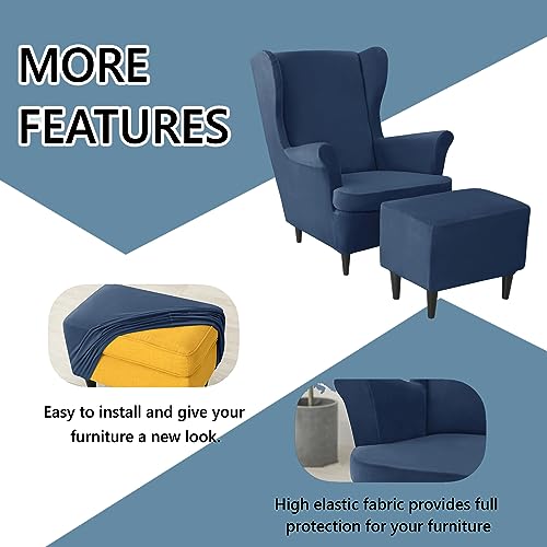 YOPOIY Tratto in Velluto Fodera Per Poltrona Impostare Con Copri Pouf, Copripoltrona Con Orecchie 3 Pezzi Morbidi Copri Poggiapiedi Fodera Per Mobili Lavabile Rimovibile -azzurro-one size