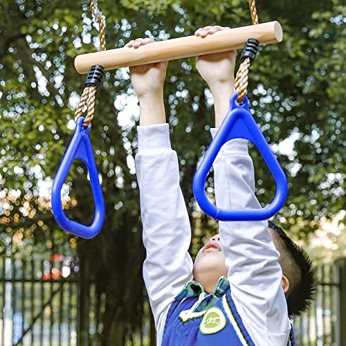 Yorbay Altalena Trapezio Struttura da Arrampicata per Bambini con Anelli da Ginnastica in Legno Attrezzature da Gioco per Giardino Esterno Altalena Torre da Gioco, 150kg