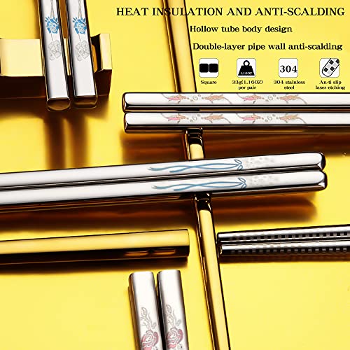 YORFULL 5 Paia Bacchette Riutilizzabili in Acciaio Inossidabile 304 Bacchette in Metallo Simpatiche Incisioni al Laser Antiscivolo Bacchette Coreane Giapponesi Cinesi