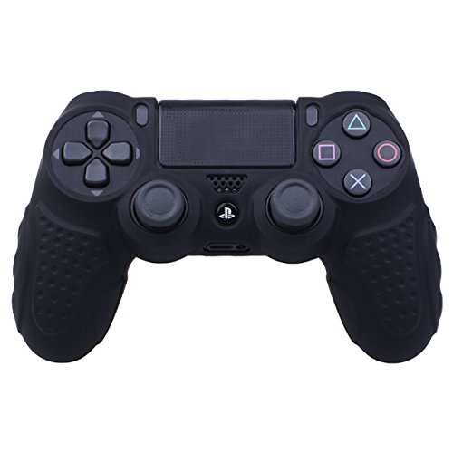 YoRHa Grip Perfetta Nessun Odore Cassa Pelle Copertura Silicone Skin Cover Custodia per PS4/Slim/Pro Controller x 1 (Nero) con PRO Presa del Pollice Thumb Grips x 8