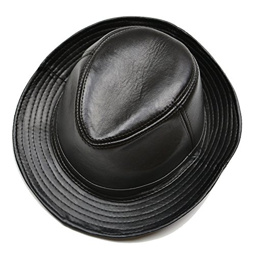 Yosang Fedora - Cappello da porkpie, in vera pelle, da uomo Nero M