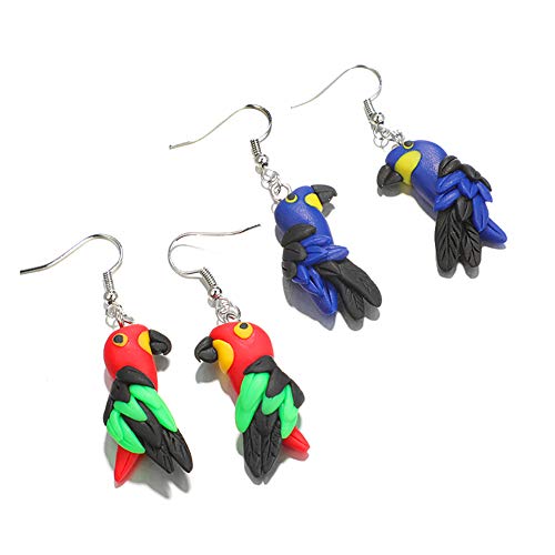 Yosemite - Orecchini da donna creativi e chic, colorati, con pappagallo e argilla polimerica, colore: Red, cod. MY2J69A625B6K18MMA7