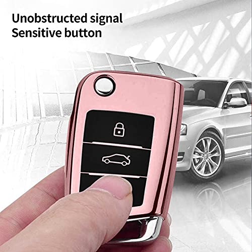 Yosemy Cover Chiave Auto 2 Pezzi Coprichiavi Cover TPU con 3 Tasti Compatibile con VW Golf 7 Custodia Protettiva Oro rosa