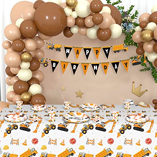 Design Raffinato: Disegni con motivi escavatori e cantieri edili, perfetto per decorazione di compleanno, feste in giardino, anniversari e ragazzi e decorazioni per feste per ragazze, baby shower