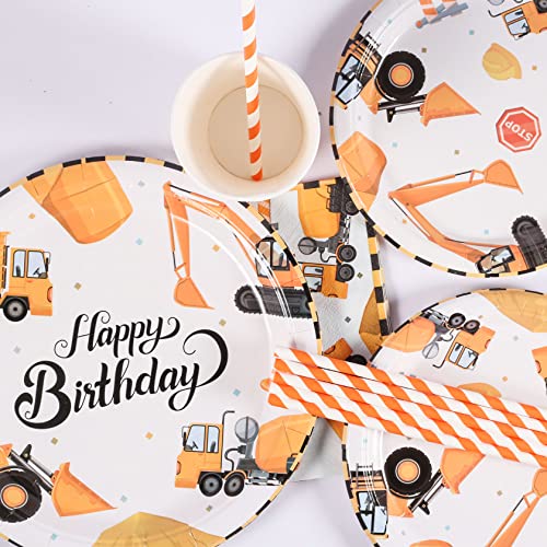 Yosemy Escavatori Set di Stoviglie per 25 Ospiti, 127 Pezzi Stoviglie per Feste di Compleanno Piatti di Carta Tazze Tovaglioli Cannucce Tovaglia Decorazione per Feste Compleanno Baby Shower, Giallo