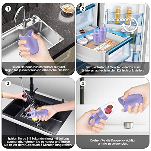 【Facile da Usare】Riempire lo stampo del ghiaccio con acqua o mettere cetriolo, latte di cocco, rosa, gel di aloe vera, crisantemo, ecc. e congelarlo. Attendete qualche minuto prima di aprire, oppure passate sotto l'acqua calda per allentare il coperchio. Applicare il ghiaccio sulla pelle con un movimento circolare ogni 30 secondi.