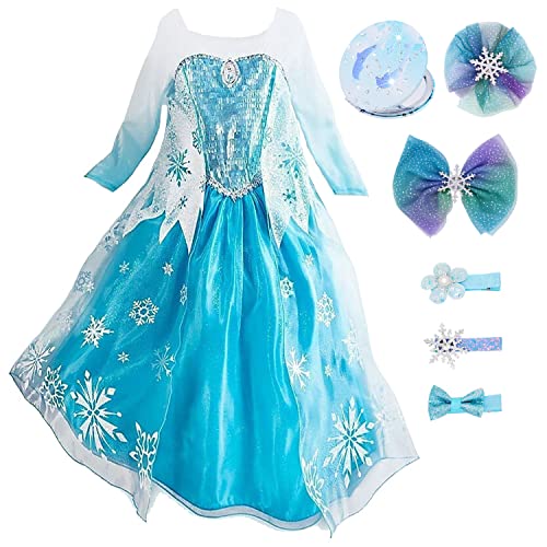 ♥♥【Elsa Dress up Accessorio】 Il pacchetto non contiene solo abiti Elsa, Include anche uno specchietto da trucco portatile e 5 bellissimi fermagli per capelli.Il vestito da principessa Elsa con Forcina unica e bellissima da tiara blu kit sarebbe un grande regalo per le vostre ragazze di essere una principessa nel festival o festa.