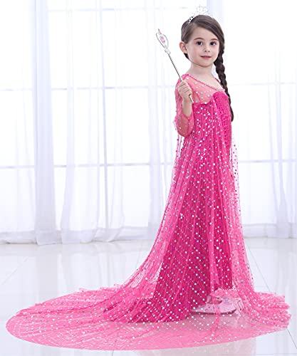 YOSICIL Vestito da Principessa Elsa Festa Invernale Compleanno Natale Carnevali Cosplay Halloween Festa Fantasia Nuovi Costumi da Principessa con Accessori con Capo (Rosa 3-8 Anni)