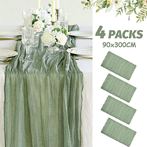Yosiio Runner da Tavolo, 4 Pezzi 90 x 300 cm Runner Verde Salvia, Runner Tavolo Moderno Elegante Runner Tavola Verde per Matrimoni, Nuziale, Baby Shower, Comunioni, Sacramenti e Compleanni