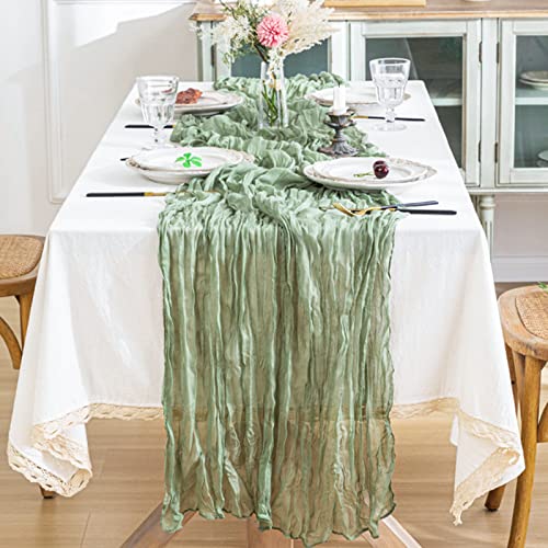 【Runner da Tavola in Garza di Cotone】 Questo runner da tavola in tulle verde salvia è realizzato in materiale 100% poliestere di alta qualità con struttura a pieghe, morbido, resistente e riutilizzabile, molto pratico. Il runner da tavola vintage è trasparente, morbido, fluente ed elegante. I runner da tavolo in tessuto verde deco sono la decorazione perfetta runner da tavolo moderno per archi o tavoli di nozze, cinture di sedia, tende, caminetti, armadi, divani, ecc.