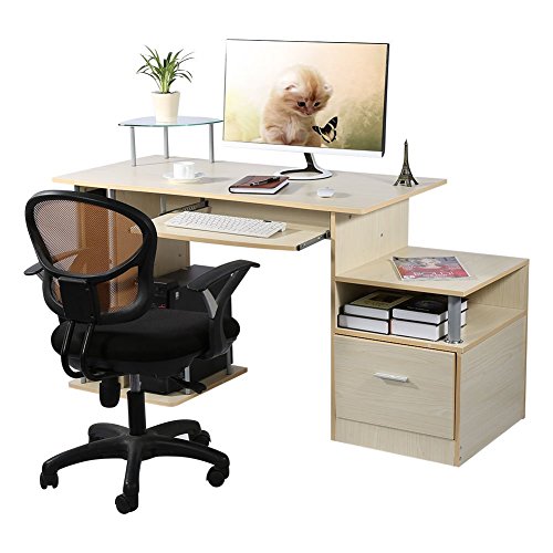 Yosoo Computer Desk Scrivania ufficio porta pc Tavolo, con Ripiani Tastiera Ripiano Scorrevole Tavoli riunioni,Colore Rovere Teak,152 x 60 x 89cm