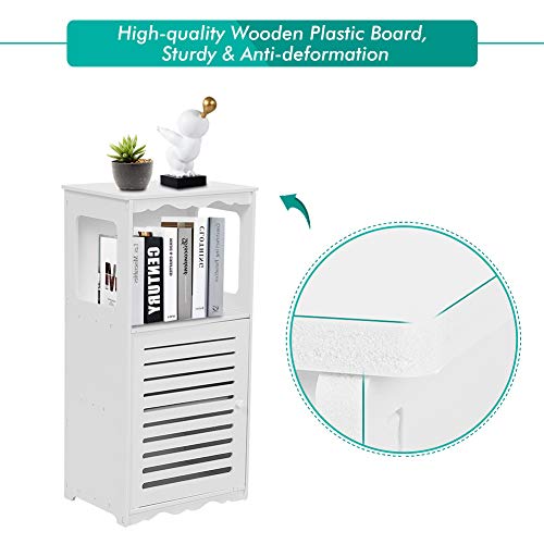 Yosoo Health Gear Mobiletto da Bagno Bianco, Comodino, Ripiano Portaoggetti, Mobile da Terra con Ante a Battente, Moderno Mobile Portaoggetti, Portaoggetti Laterale in Legno