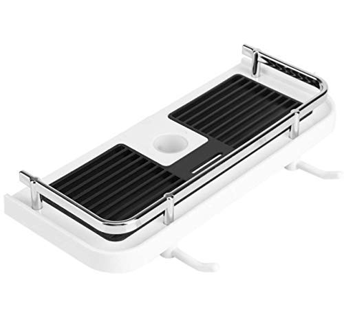 Yosoo - Mensola per doccia telescopica, regolabile in base al palo doccia, insieme portaoggetti con 2 ganci per asciugamani, organizzatore di bagno per shampoo, sapone, lozione