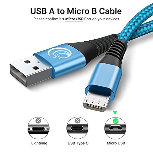 Compatibilità universale: questo cavo micro USB extra lungo supporta la maggior parte dei telefoni cellulari Android e dispositivi Android. Compatibile con Samsung Galaxy S7 Edge S6 S5 S3 J3 J4 J4+ J5 J6 J7 A6 A7 A10, Samsung Note 5/4/3, Samsung Tablets/Tab, Huawei P Smart Y6 Y7, Honor 7X/6X, Oppo A15 A15s, Motorola, LG, Sony, HTC, Nokia, Xbox One controller. PS44, controller PS4, er, Kindle Fire e altri dispositivi micro USB.