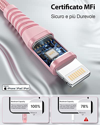 【Ricarica Rapida e Trasmissione Dati】Questo Cavo iPhone supporta la ricarica sicura ad alta velocità (3A) e il trasferimento dati veloce a 480 Mbps. Puoi utilizzare il Cavo Lightning USB per caricare l'iPhone al 58% in 30 minuti, prevenendo il surriscaldamento e il sovraccarico per garantire la sicurezza