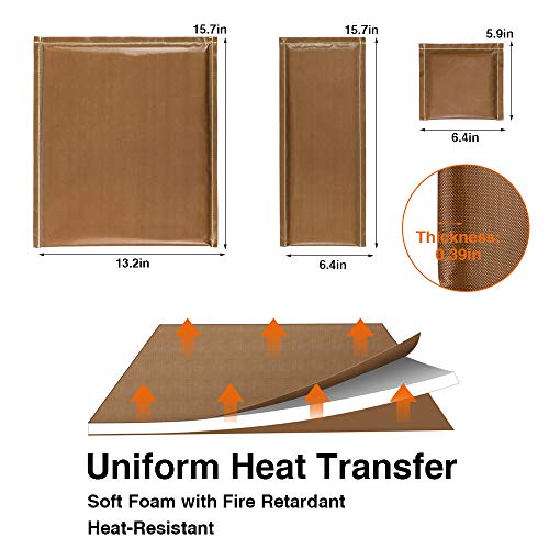 [Materiale speciale]: realizzati in carta PTFE Teflon antiaderente e schiuma ad alta densità resistente al fuoco, con buone cuciture intorno al perimetro di ogni cuscino per pressa a caldo. La schiuma all'interno è di un bel tipo solido e durevole che resiste a oltre 260 gradi di calore, mantiene il tuo capo intatto e protetto, assicura che il cuscino di trasferimento a caldo sia impermeabile, riutilizzabile, lavabile e resistente al calore, di alta qualità per un uso prolungato.