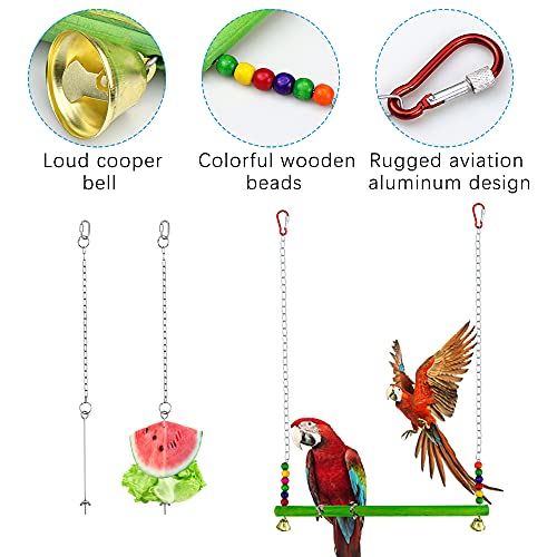 Materiale: il giocattolo da appendere è realizzato in acciaio inossidabile, antiruggine, robusto e durevole. Può essere utilizzato a lungo anche sotto il succo di frutta e verdura. L'altalena di pollo è realizzata con materiali in legno naturale, perline di legno colorate e hardware. Non c'è bisogno di preoccuparsi che gli strumenti arrugginiscano e contaminino il cibo per proteggere la salute degli animali domestici.
