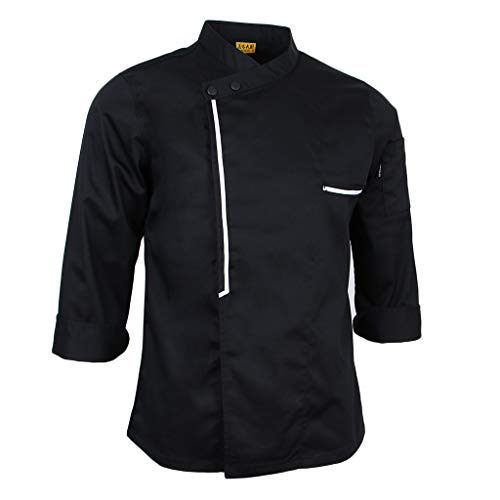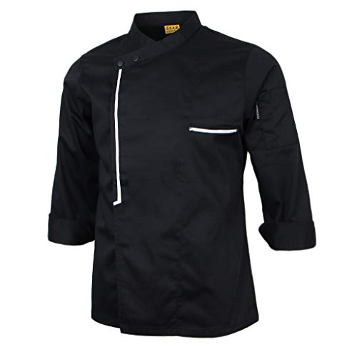 Yotijar Abbigliamento Da Cucina per Hotel a Maniche Lunghe per Uomo, Donna, Retro, Giacca Da Cuoco - Nero, XL