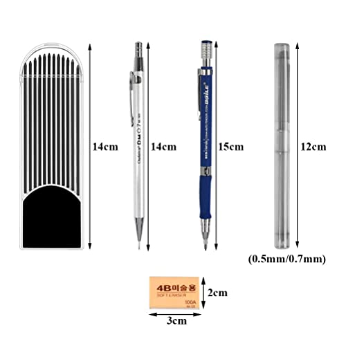 YOTINO Set di matite meccaniche 30 13 matite meccaniche Diverse dimensioni Colore (oro, argento, nero, blu) (0,5 mm, 0,7 mm, 2,0 mm) 12 tubi di miniera di piombo 4 gomme da cancellare