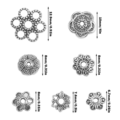 YOTINO 100g Perline Argento Tibetano, Perline Tibetano Argento Accessori, Perline Distanziatori Forma Fiore per Creazione Gioielli Fai Da Te Orecchini Collana Bracciali Monili Ciondoli-Circa 200pz