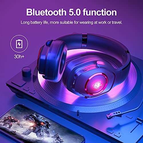 YOTMS Cuffie Wireless, Cuffie da Gioco Cablate per PC PS4 PS5, Cuffie Bluetooth Over Ear Music solo per Telefono/Tablet/Laptop, con Microfono a Cancellazione del Rumore, Bassa Latenza, 40 Ore (Rosso)