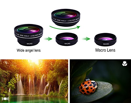 2 in 1 Camera Lens: una costruzione top-grade in alluminio e vetro ottico Advanced lantanoidi aumentare la vostra capacità di fotocamera e creare incredibili foto, minimizza lenti antiriflesso, riflessione, fantasma e altri artefatti per eccezionale chiarezza