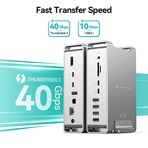 Yottamaster Docking Station 15 in 1 compatibile con Thunderbolt 3 40 Gbps Dock con 8 K @30 Hz, USB3.1&3.0, PD60 W, Gigabit Ethernet, audio, lettore di schede SD/TF per computer portatili Windows e Mac