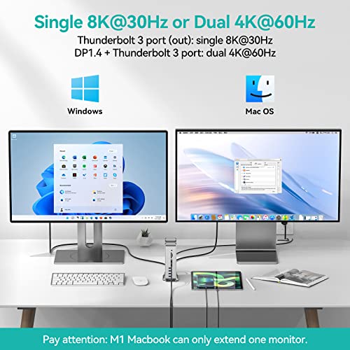 Display da 8 K a 30 Hz: goditi un display cristallino da 8 K a 30 Hz con la porta di uscita Thunderbolt 3 e il connettore DP1.4. Se si desidera espandere solo uno schermo, basta collegare l'uscita Thunderbolt 3 per ottenere un singolo display da 8 K a 30 Hz. Attenzione: il MacBook M1 può estendere solo un monitor.